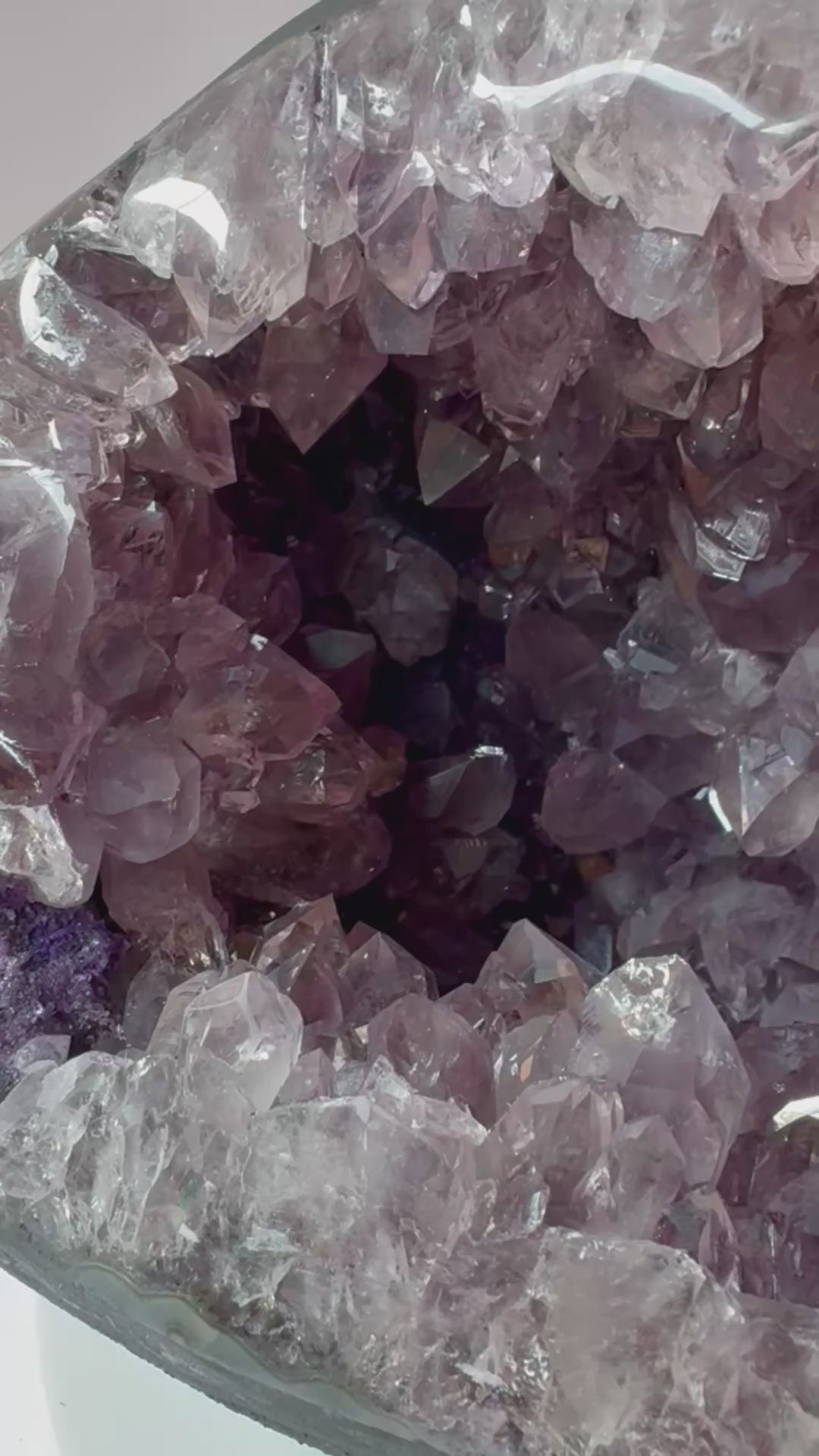 - Amethystdruse mit Yin&Yang Kristallen und Quarz-Chalcedonrand, Vorderseite in Handarbeit poliert
