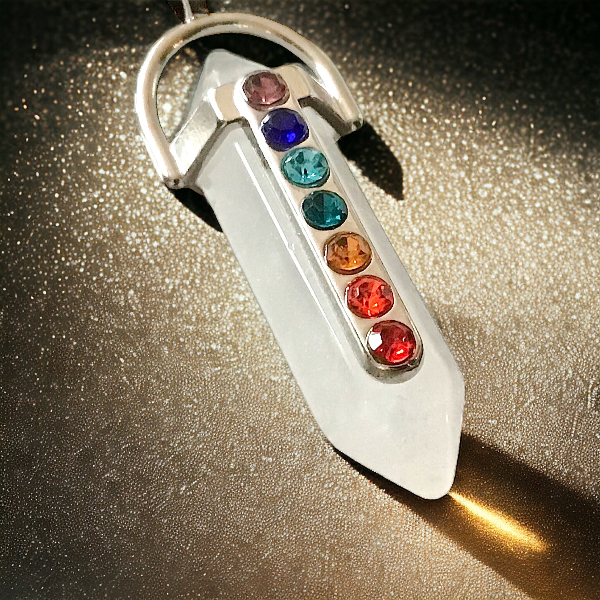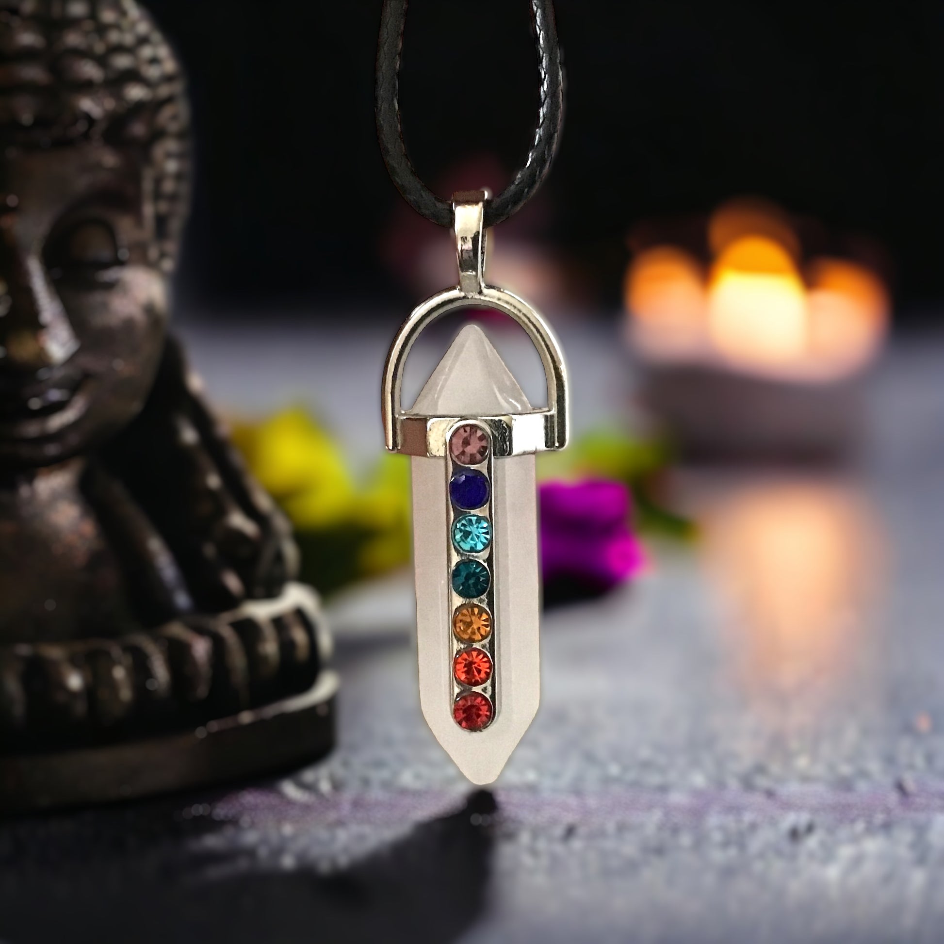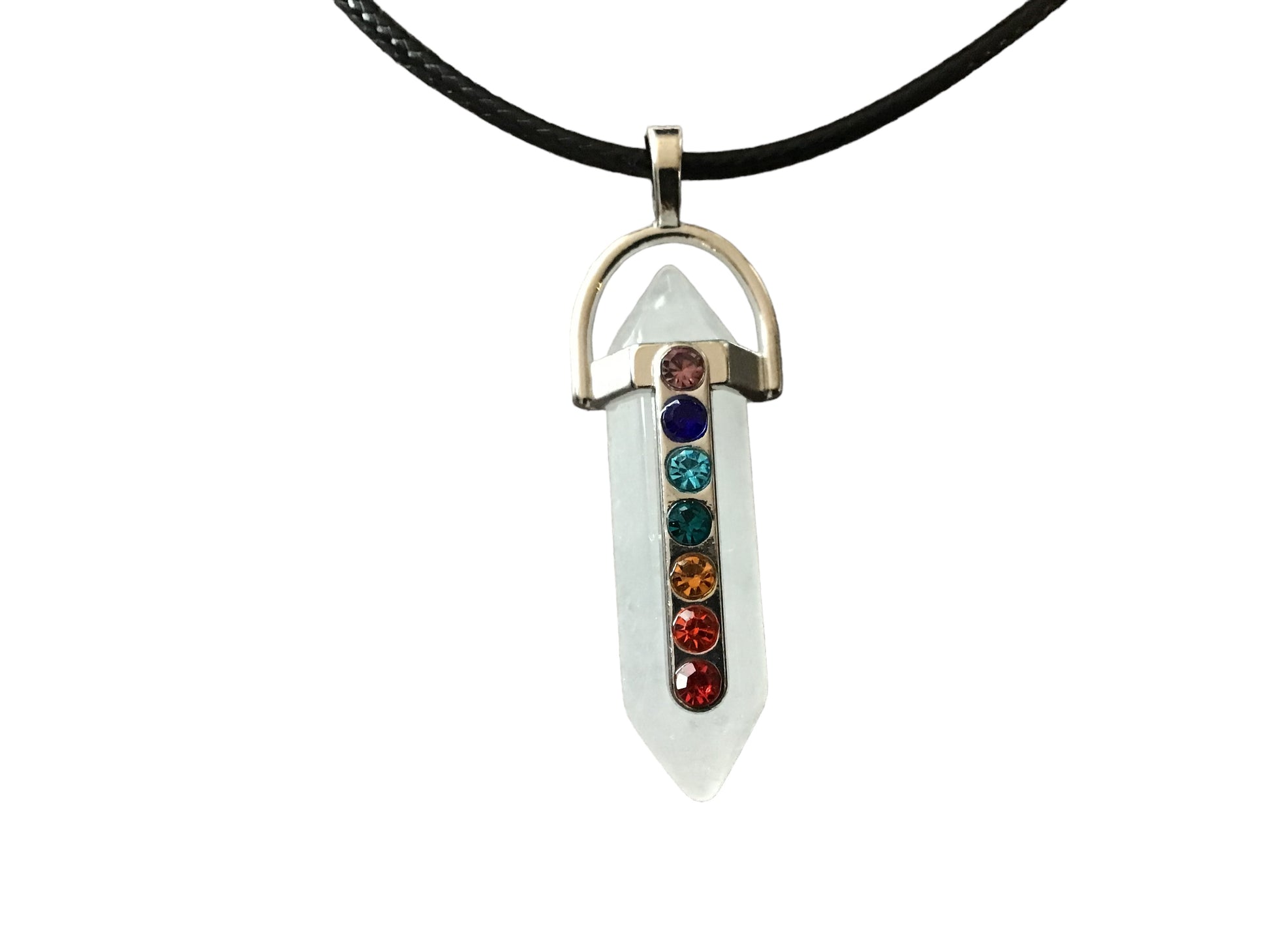 Anhänger Hexagon weiss mit 45 cm Kordelkette - CHAKRA - 50x8x8 mm - 5 Gramm