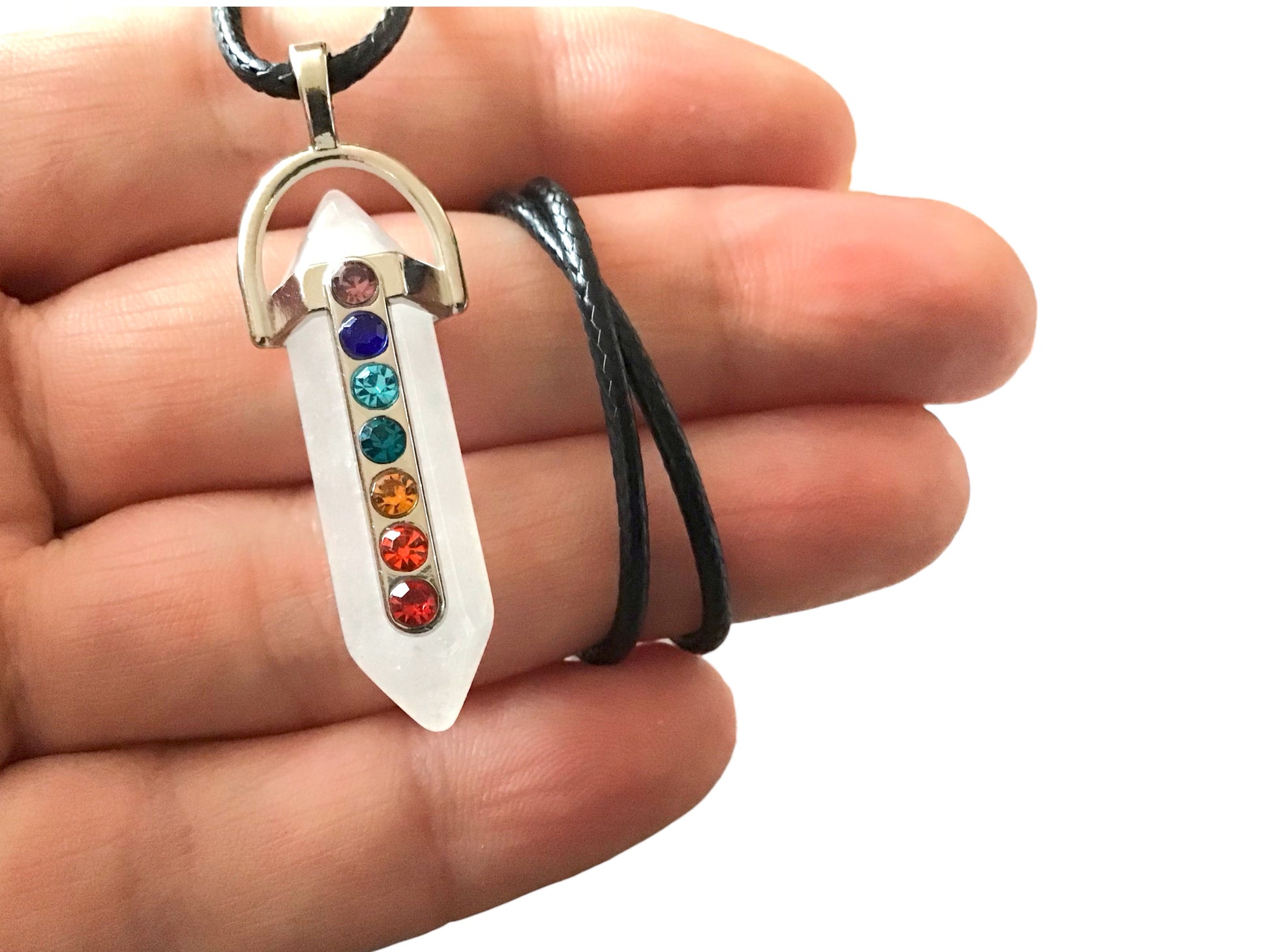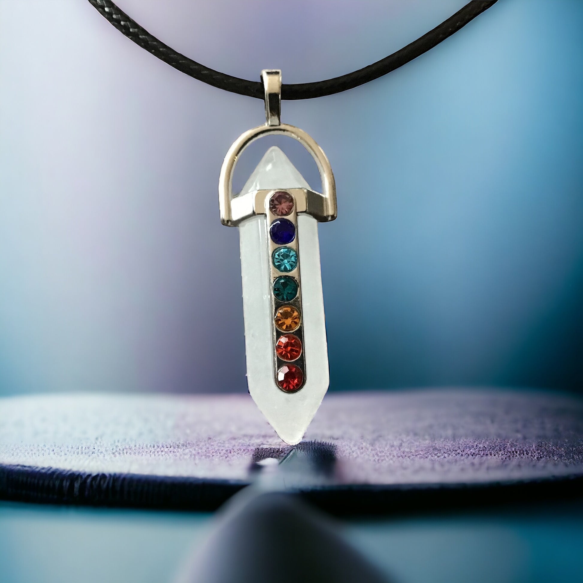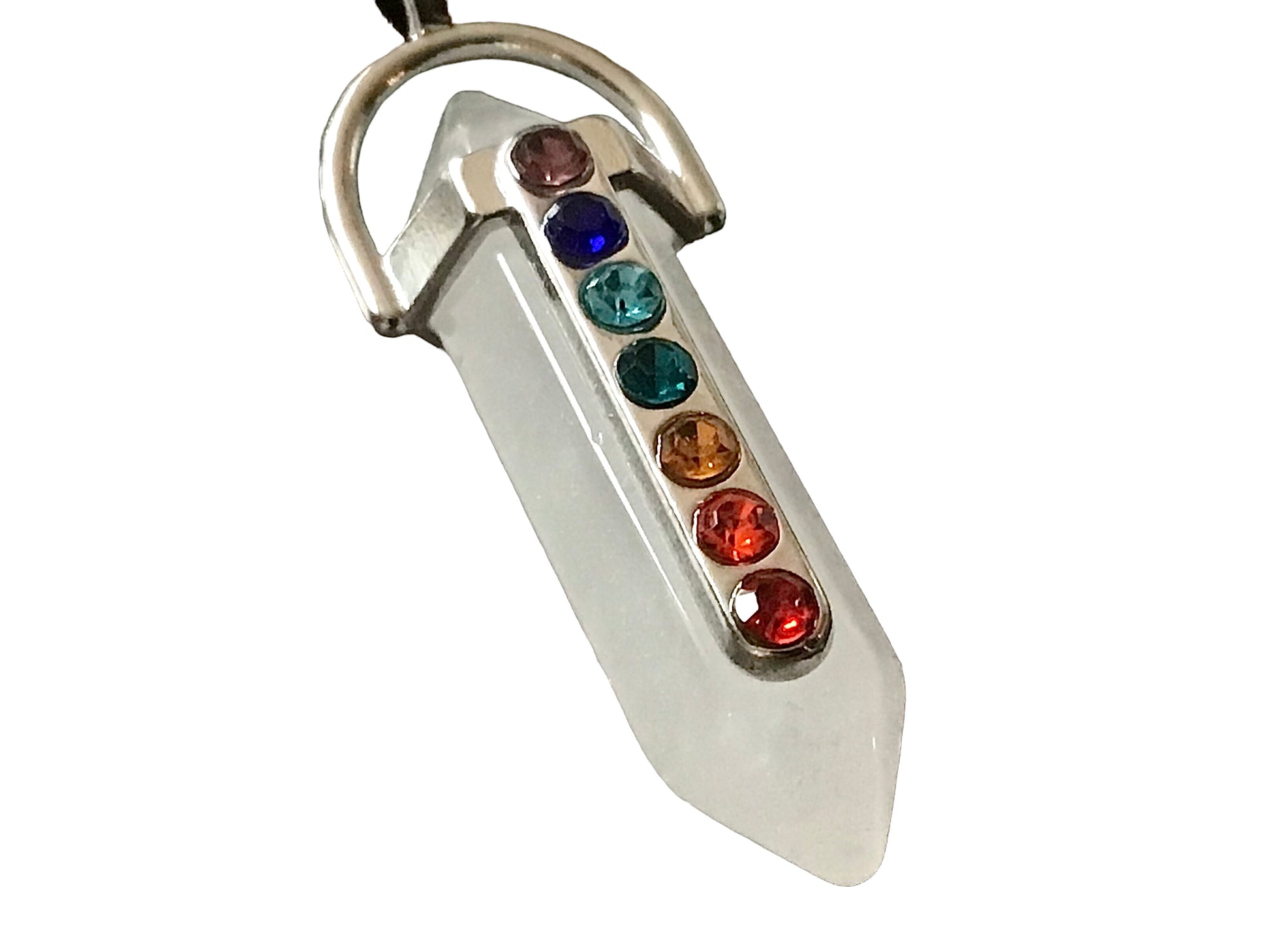 Anhänger Hexagon weiss mit 45 cm Kordelkette - CHAKRA - 50x8x8 mm - 5 Gramm
