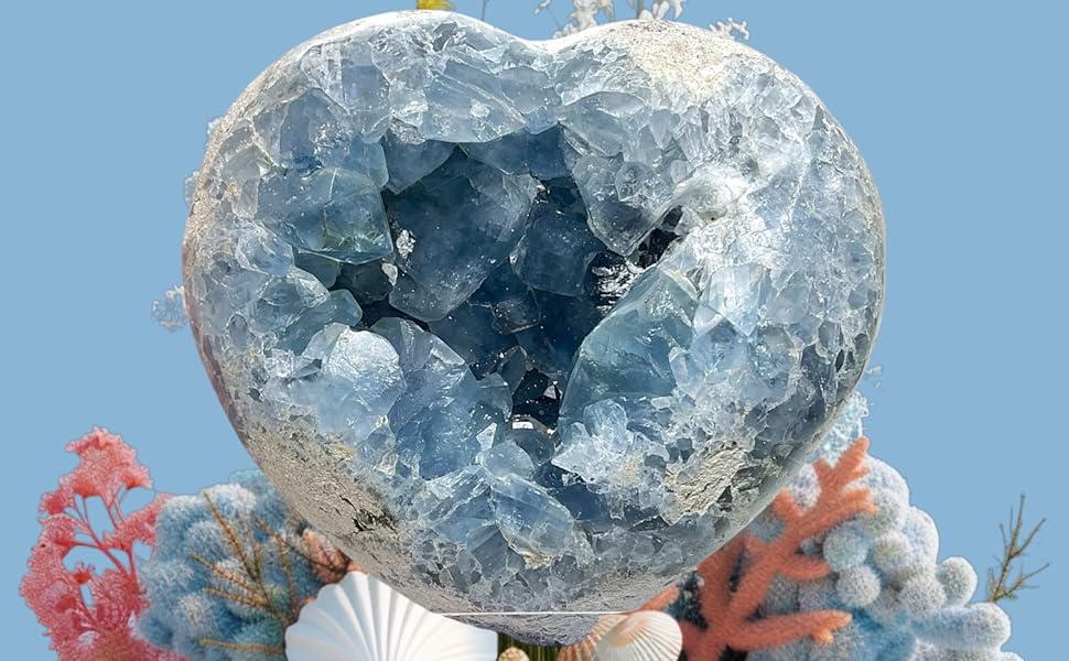 Coelestin Kristall in Herzform | 1,7 KG I 13x12x6cm I herrlich blaue Kristalle | Top Qualität | Unikat-Masterpiece 1640 I Madagaskar