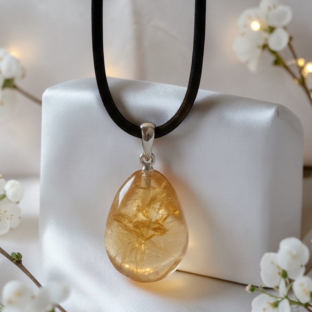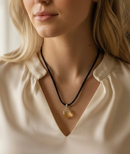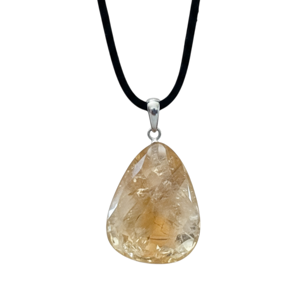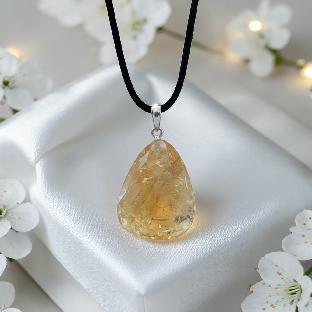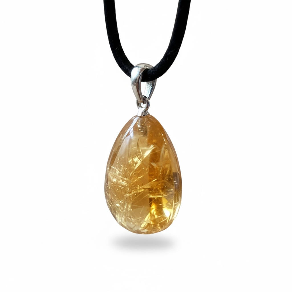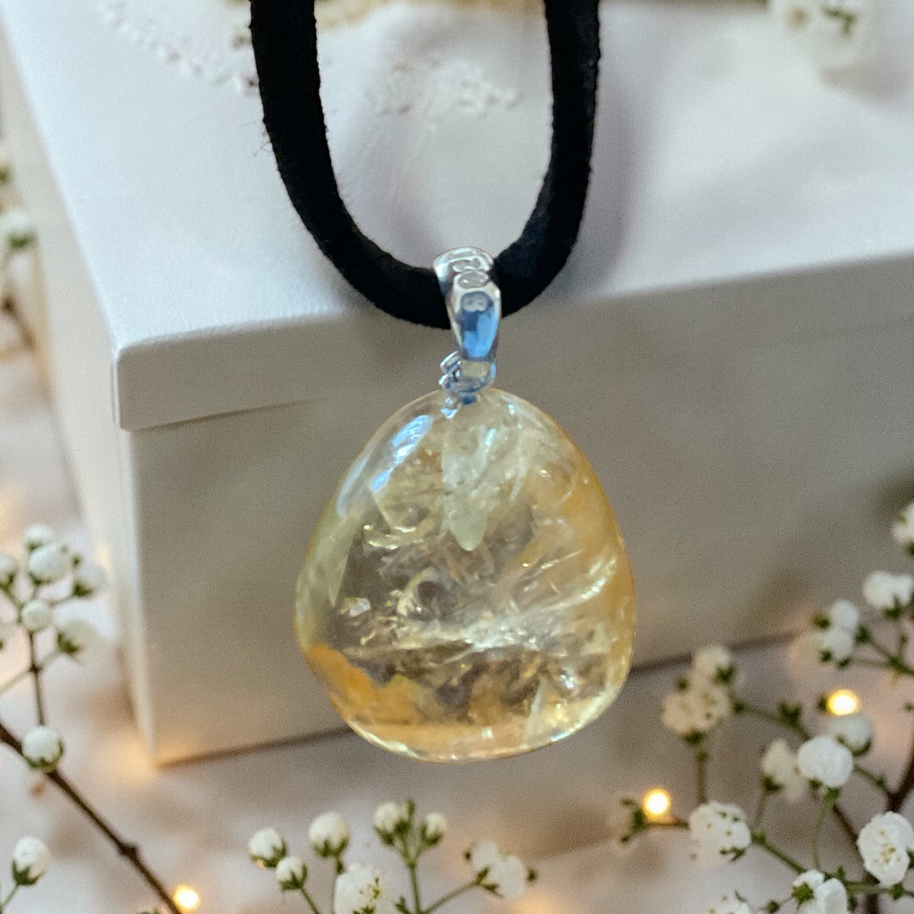 Echter Citrin Edelsteinanhänger mit 925 Silberöse I hochglanzpolierter Citrin Naturstein I Tropfenanhänger I AAA-Qualität I starker Heilstein I mit 80 cm Wildlederband und Geschenkbox I Brasilien