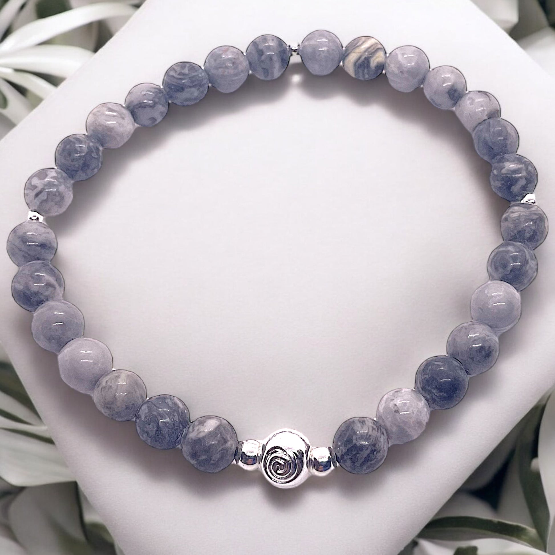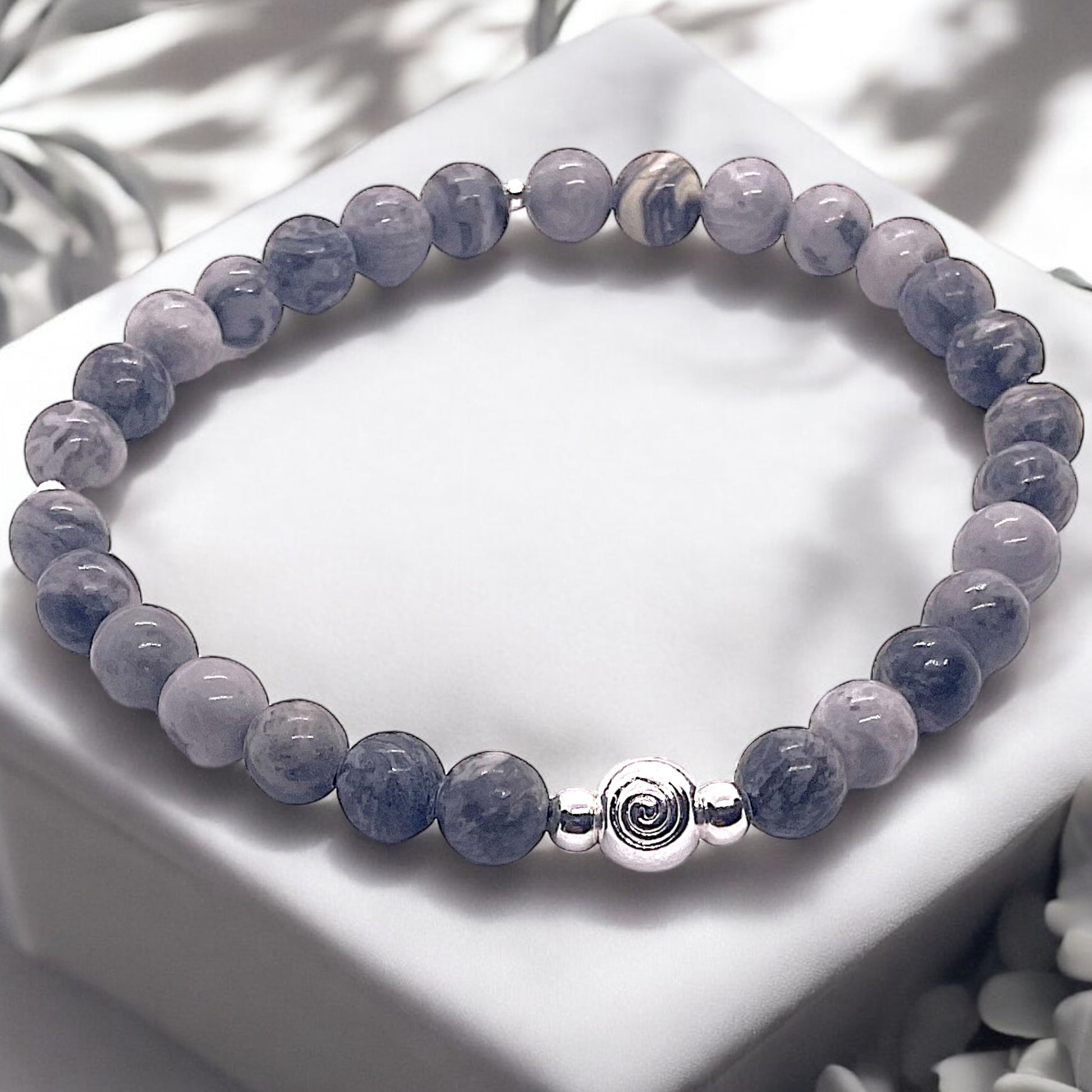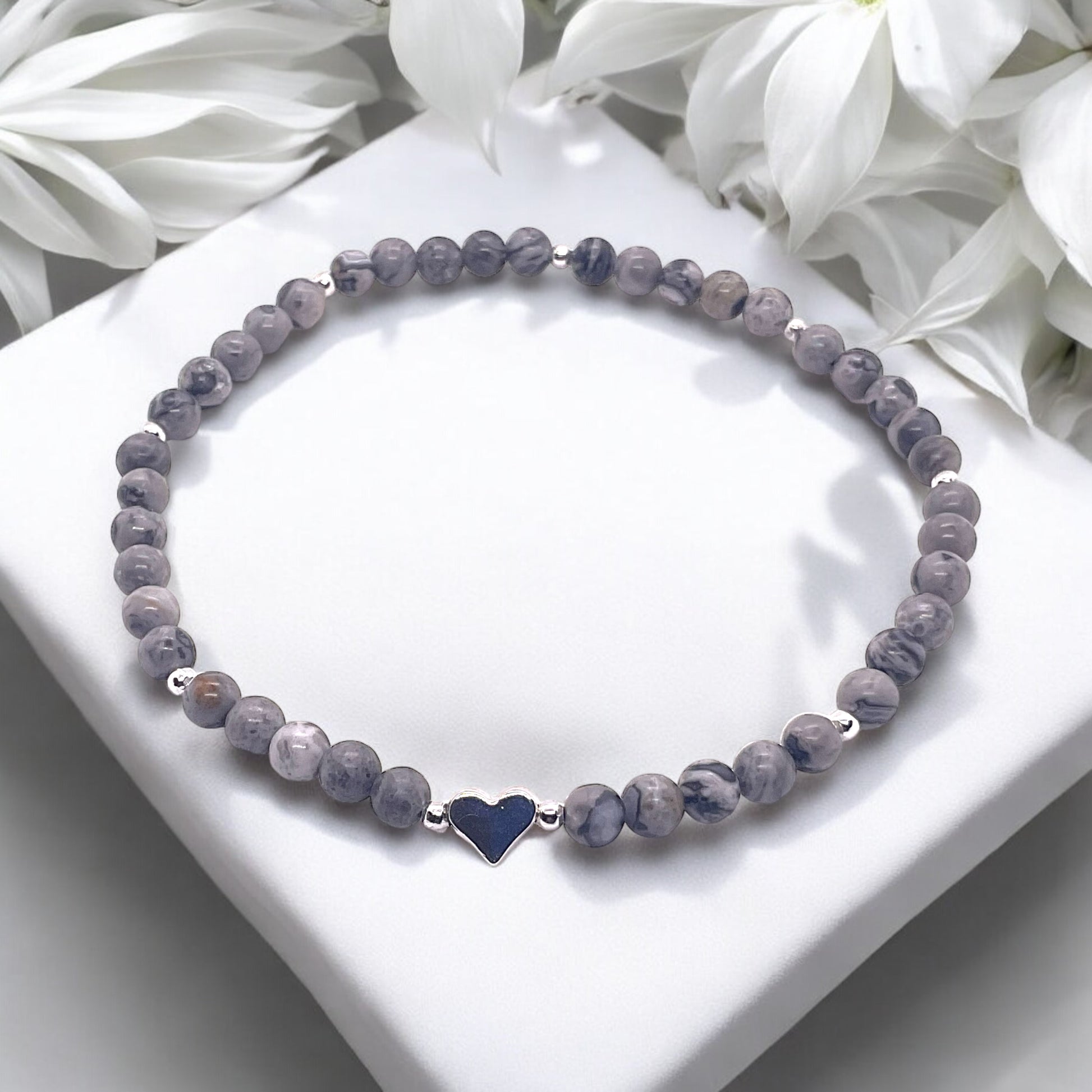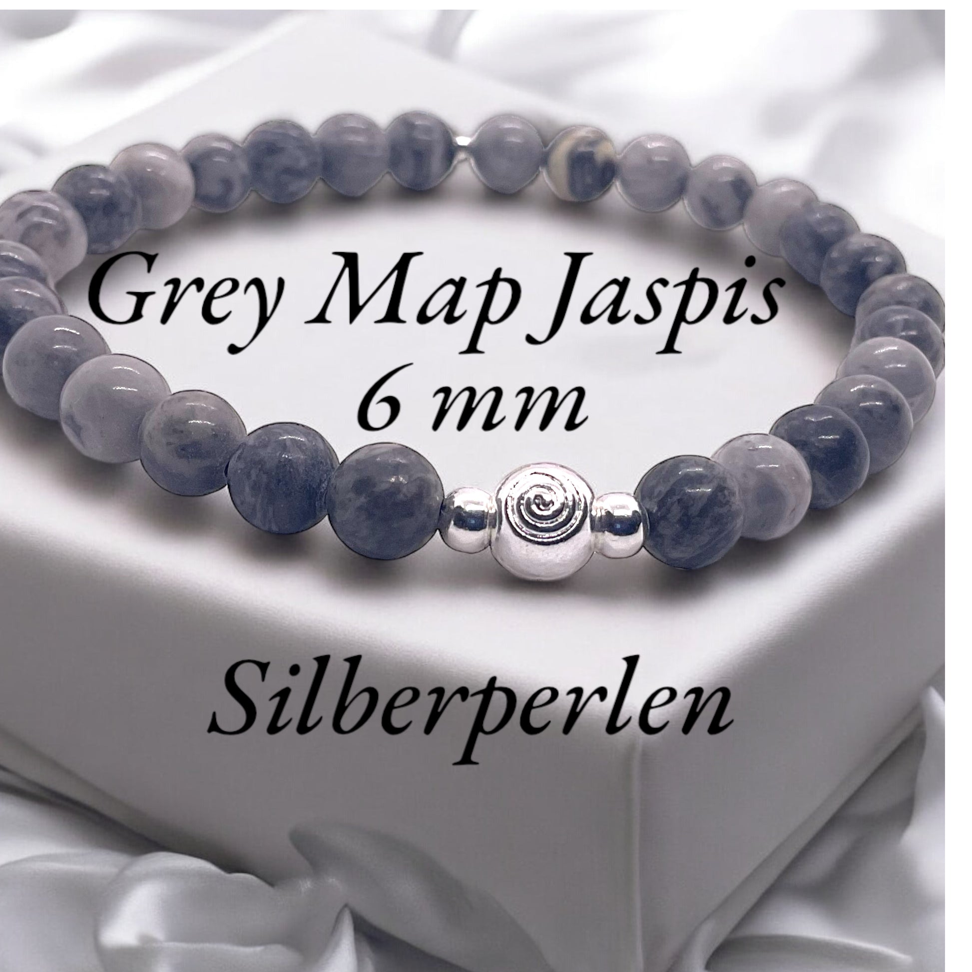 Edelstein Perlenarmband aus grauem Picasso Jaspis - Hochwertige Heilsteine mit 925 Silberperlen oder Herzchen - handgefertigt - in Geschenkbox - Kreativität und Entschlossenheit