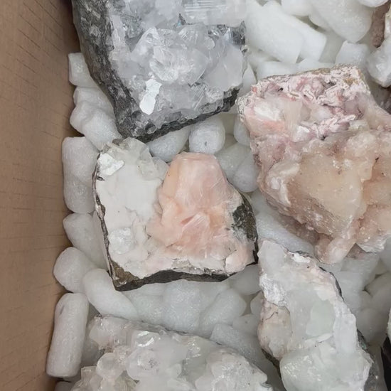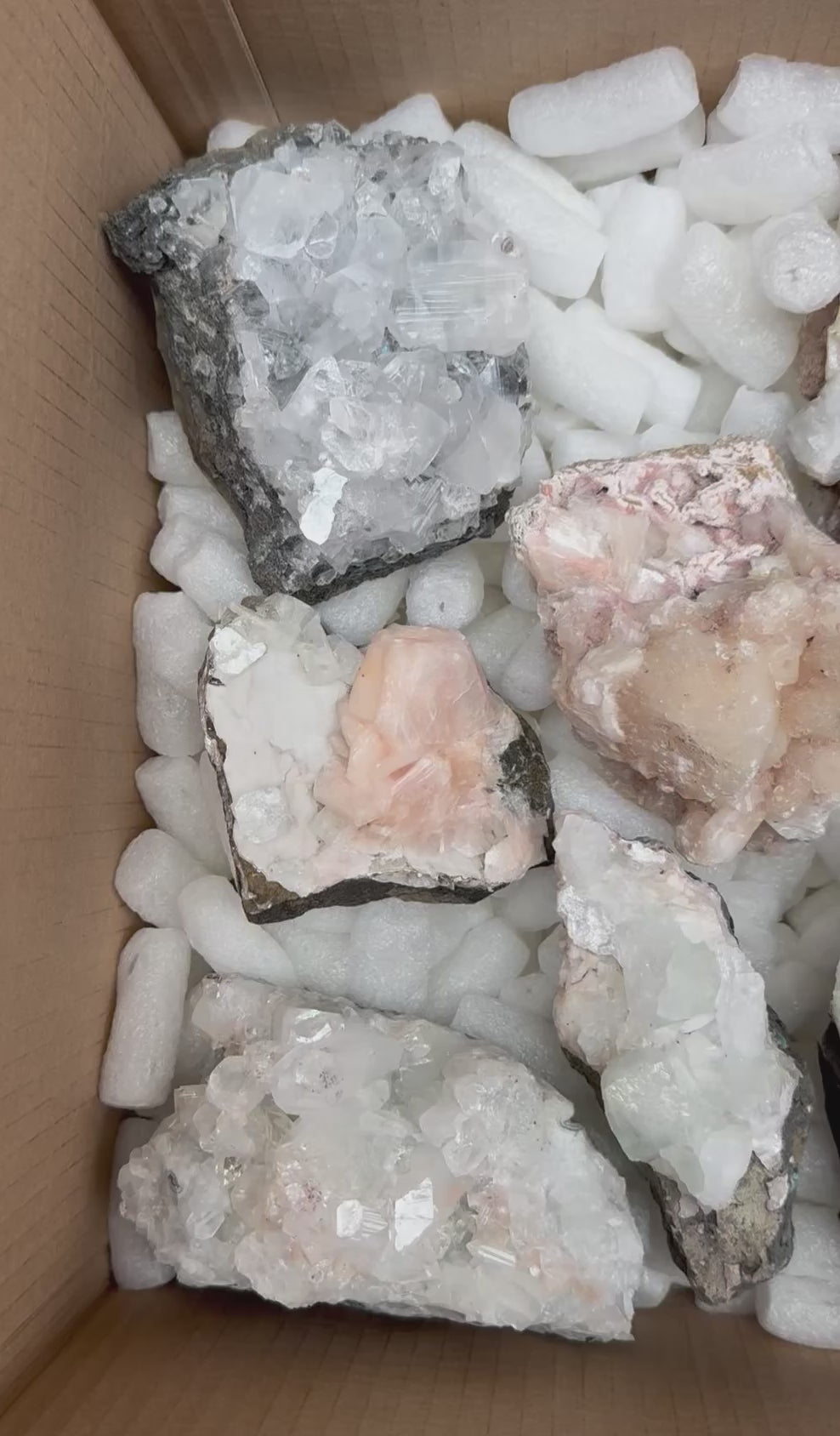 Kristalle Apophyllit, Stilbit usw. in verschiedenen Größen aus Indien B-WARE 5,95 kg -SALE- Konvolut Nr.: 1223