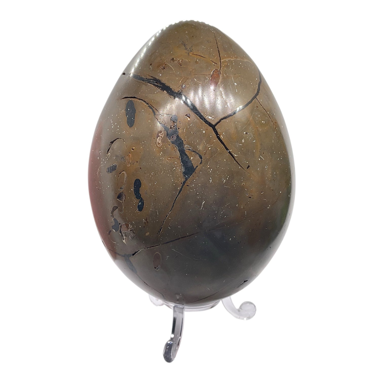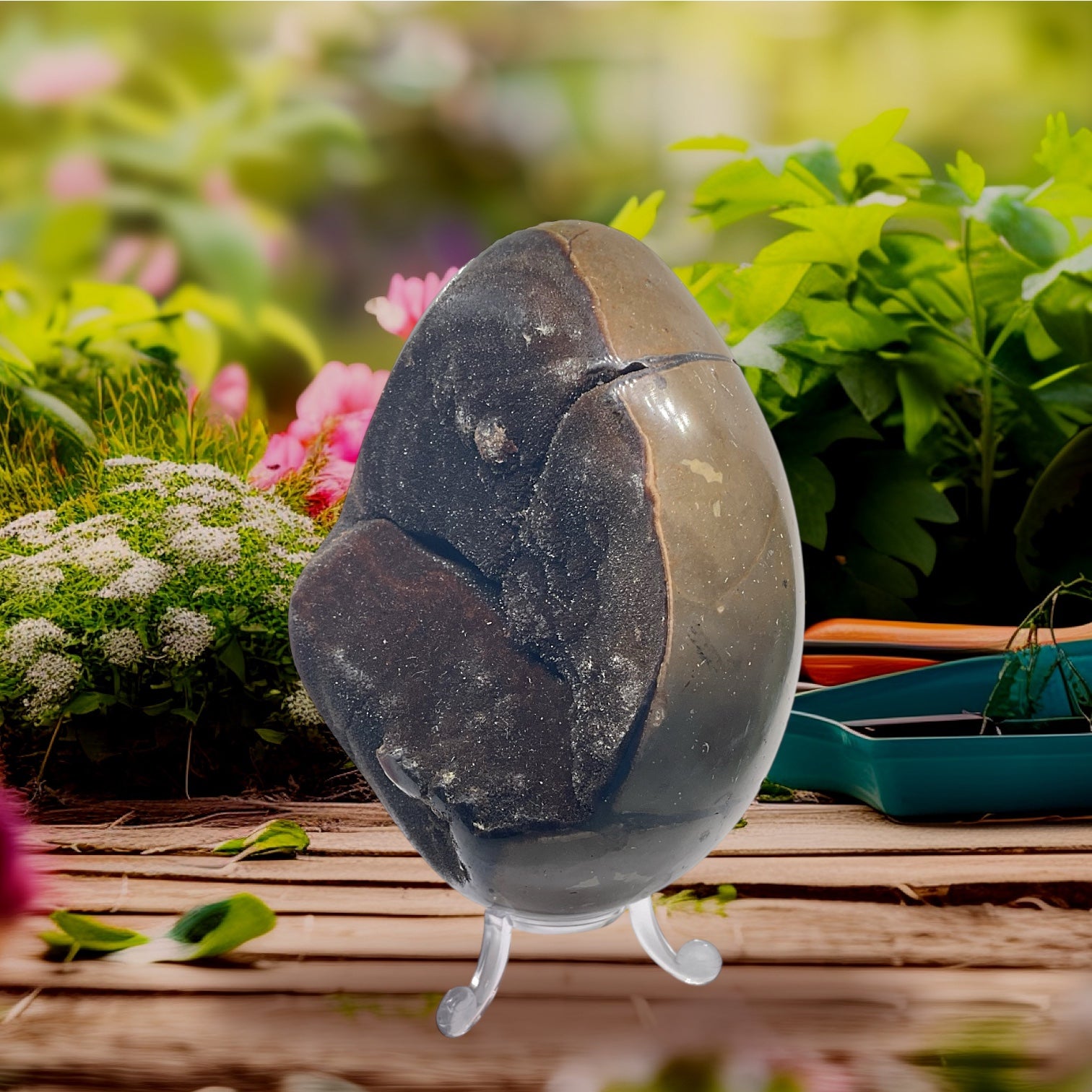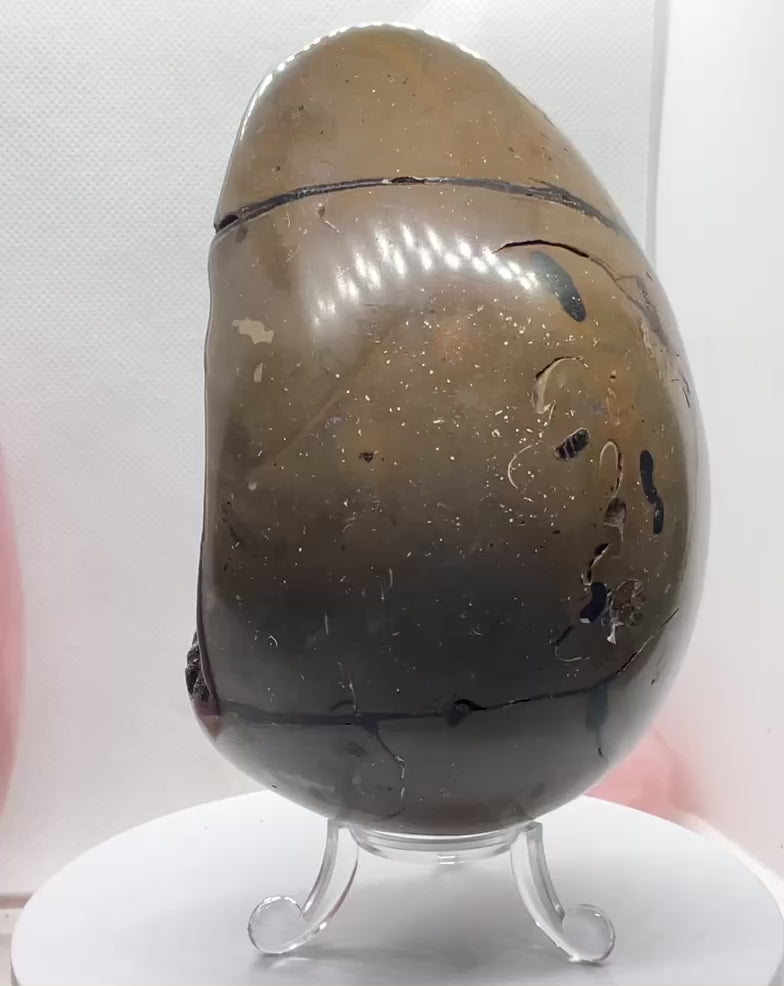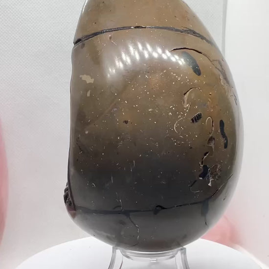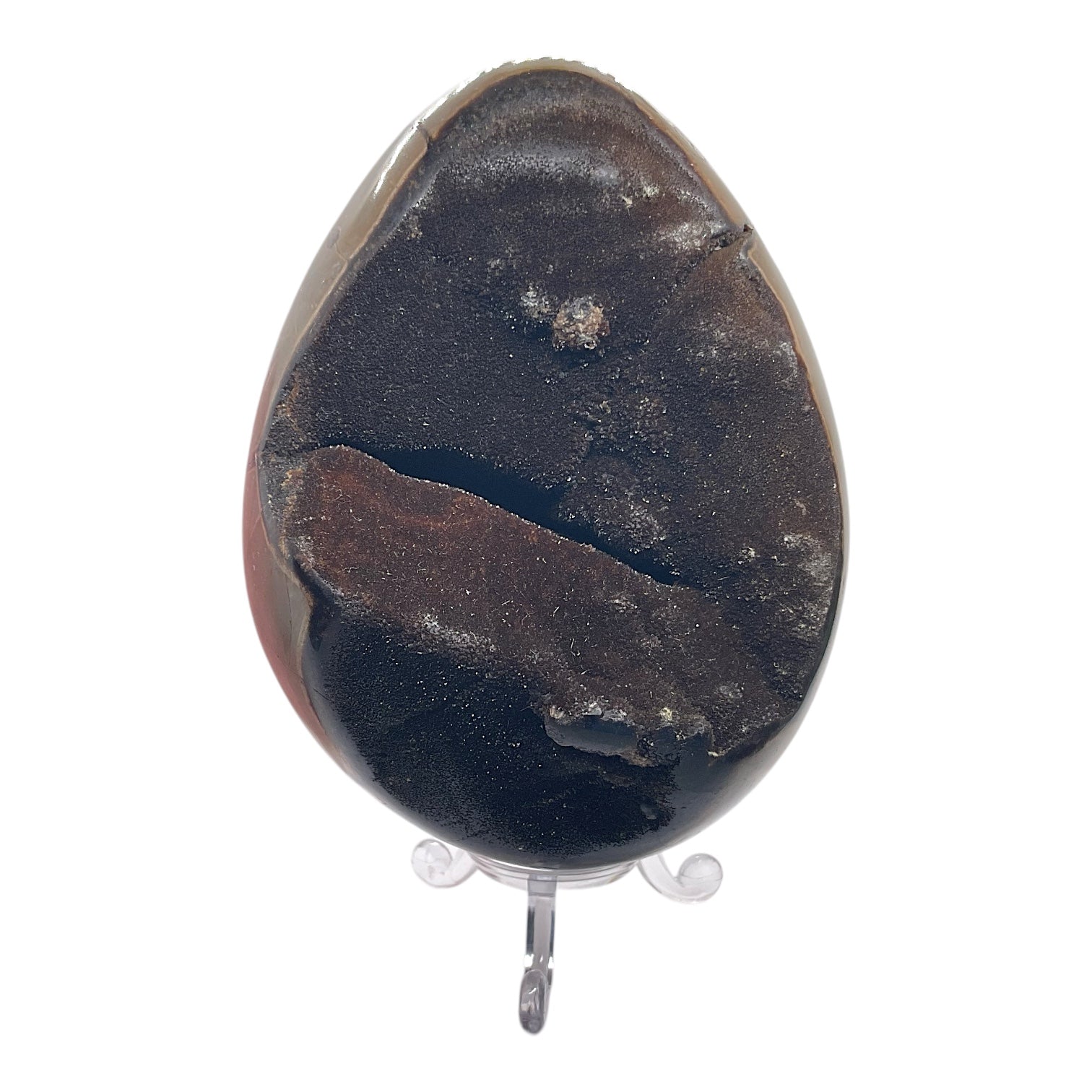 Mystisches Septarien Drachenei | Kristalldruse | Freeform | Unikat-Masterpiece 1631 | 12x8x8 cm | 1022 Gramm | mit Quarzkristall | inclusive Acrylständer I Madagaskar