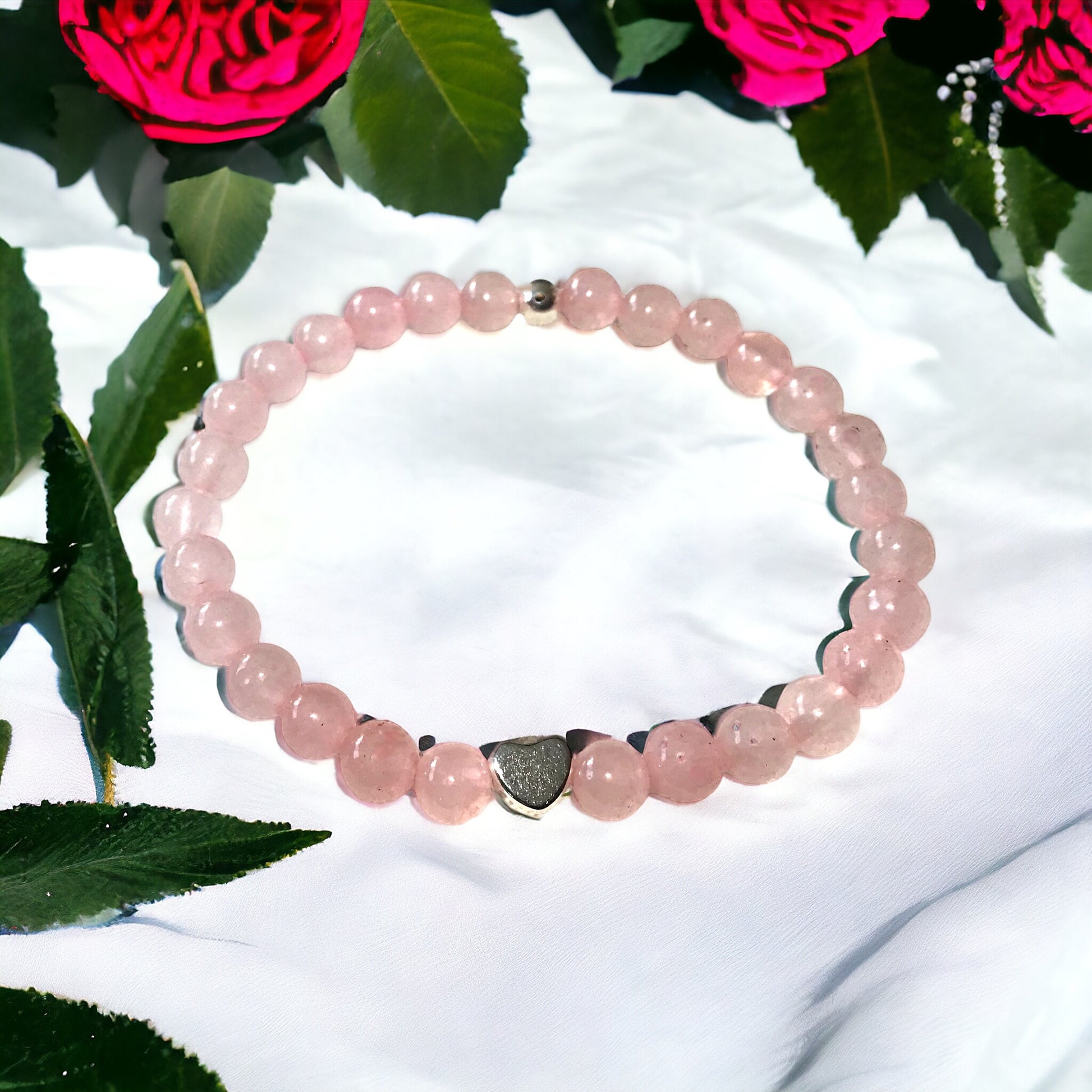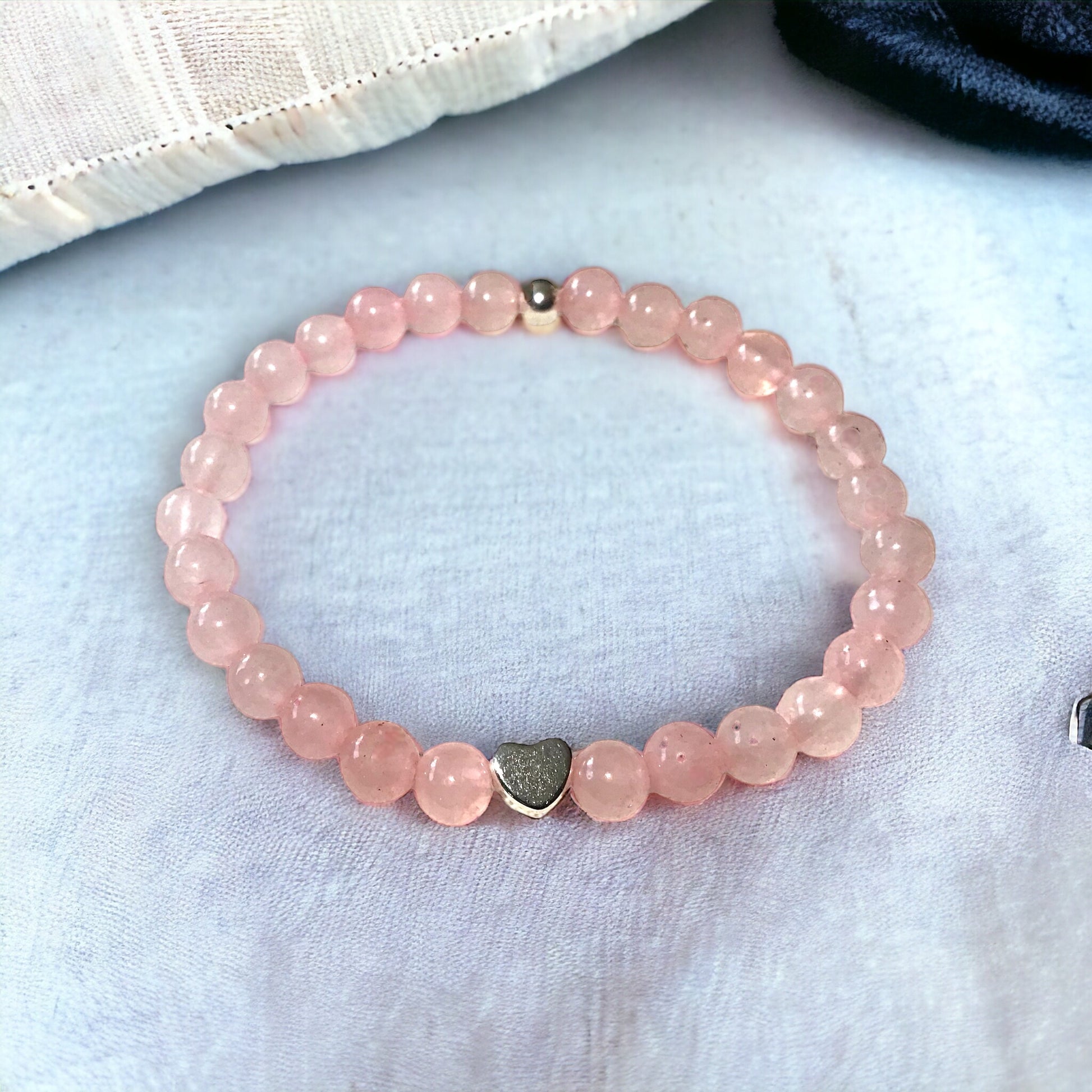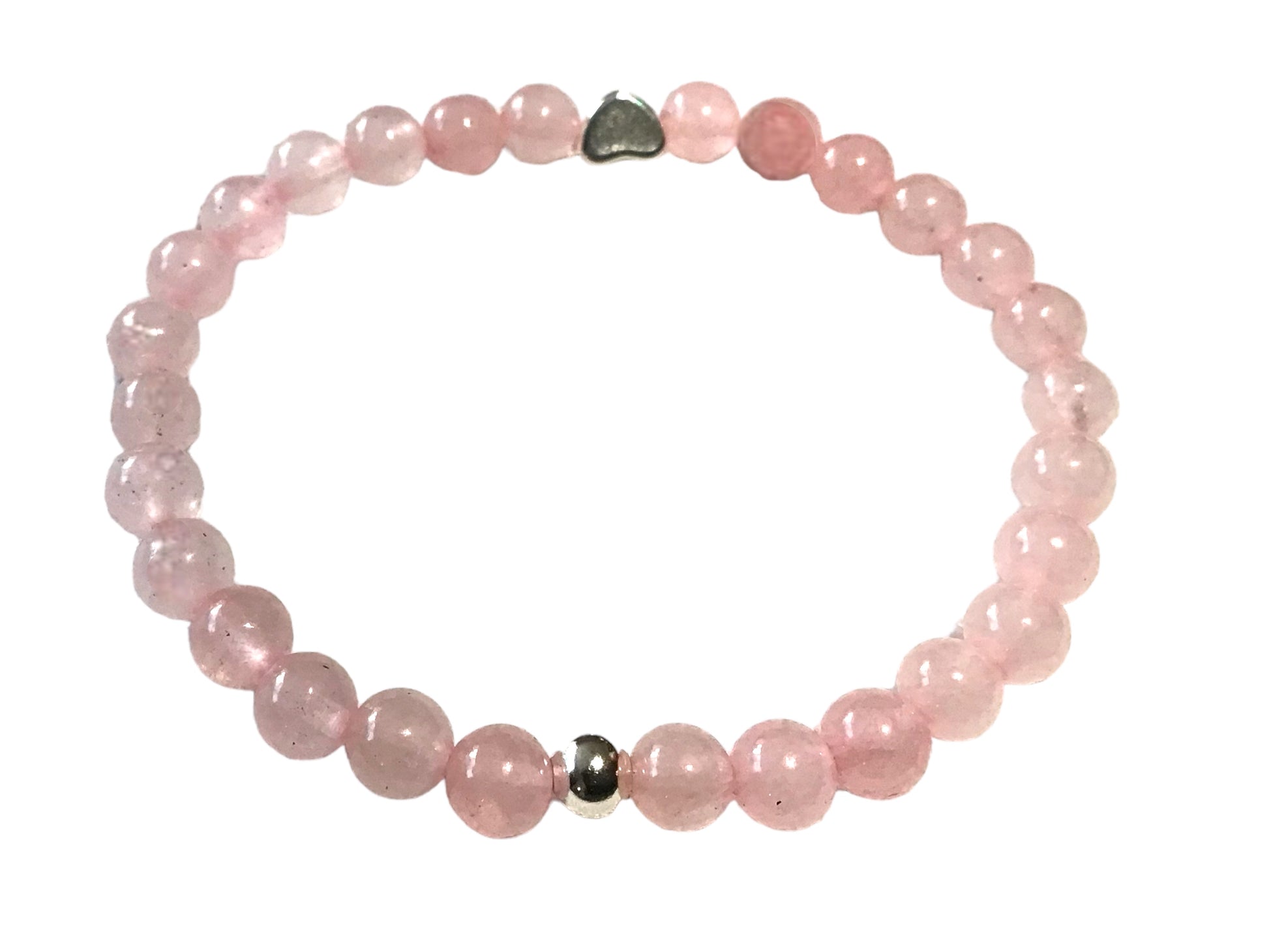 Steinfixx® - Echtes Rosenquarz Perlenarmband mit 925 Silberperle und versilbertem Herz - Hochwertiges Edelsteinarmband handgefertigtChakra-Armband für Damen & Herren