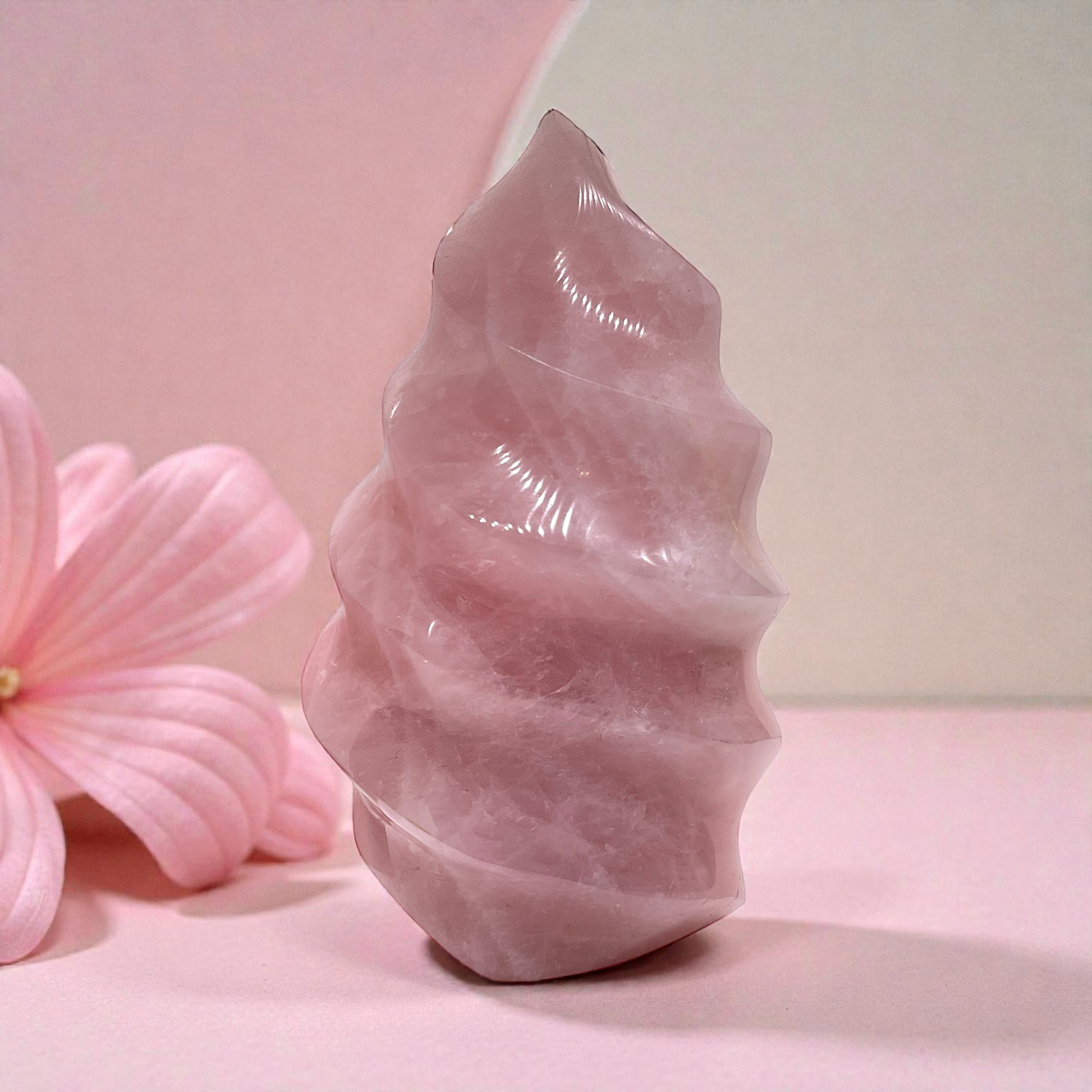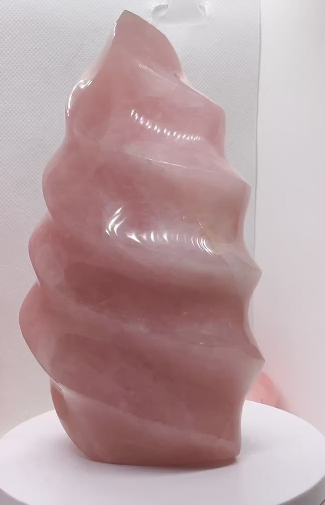 Kristall Flamme aus Rosenquarz I 1056 gr. I 9x7x15 cm I Unikat-Masterpiece 1536 I Sammlerstück I Edelsteinspirale I Computerstein I Dekoration I Madagaskar