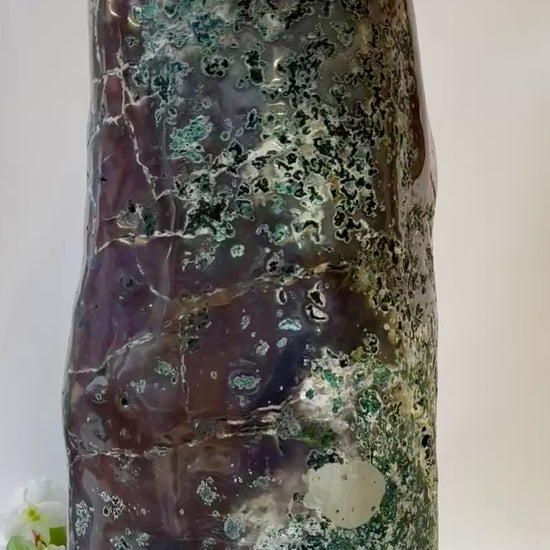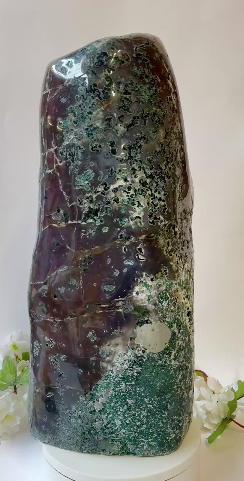 - Amethystdruse mit Yin&Yang Kristallen und Quarz-Chalcedonrand, Vorder- und Rückseite in Handarbeit poliert