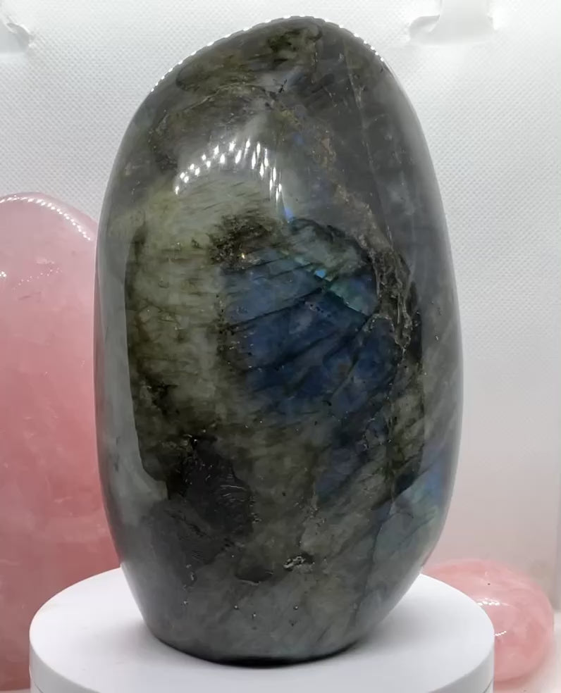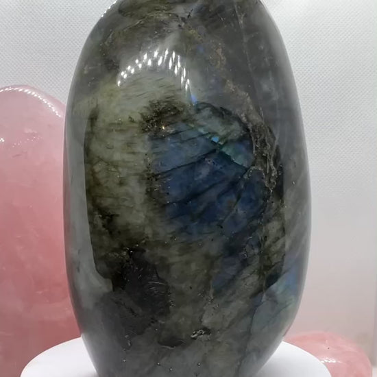 - Sie erhalten eine traumhaftes, von uns für Sie ausgesuchtes Labradorit Freeform Unikat, da wir finden, dass jede freie Form zu schön ist, um sie nur nach Gewicht anzubieten. So finden Sie Ihren ganz persönlichen Lieblingsstein auch leichter.